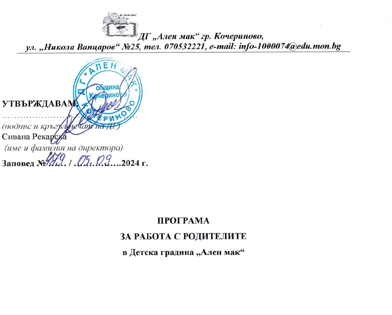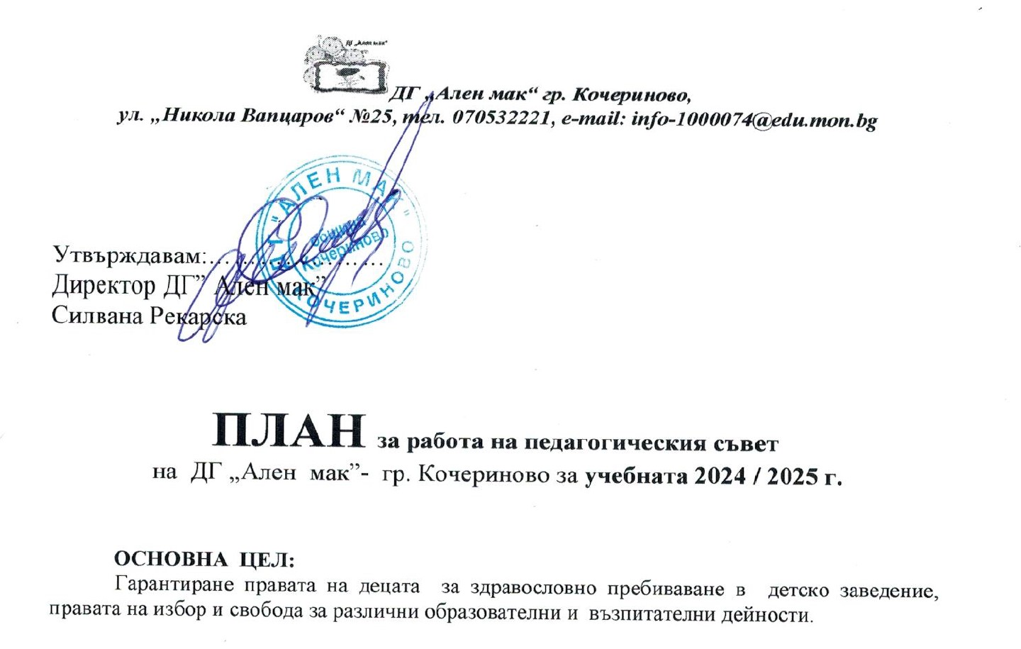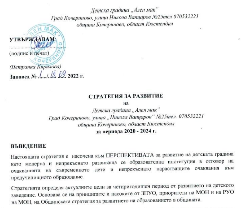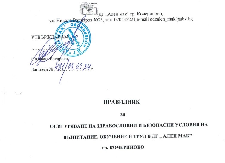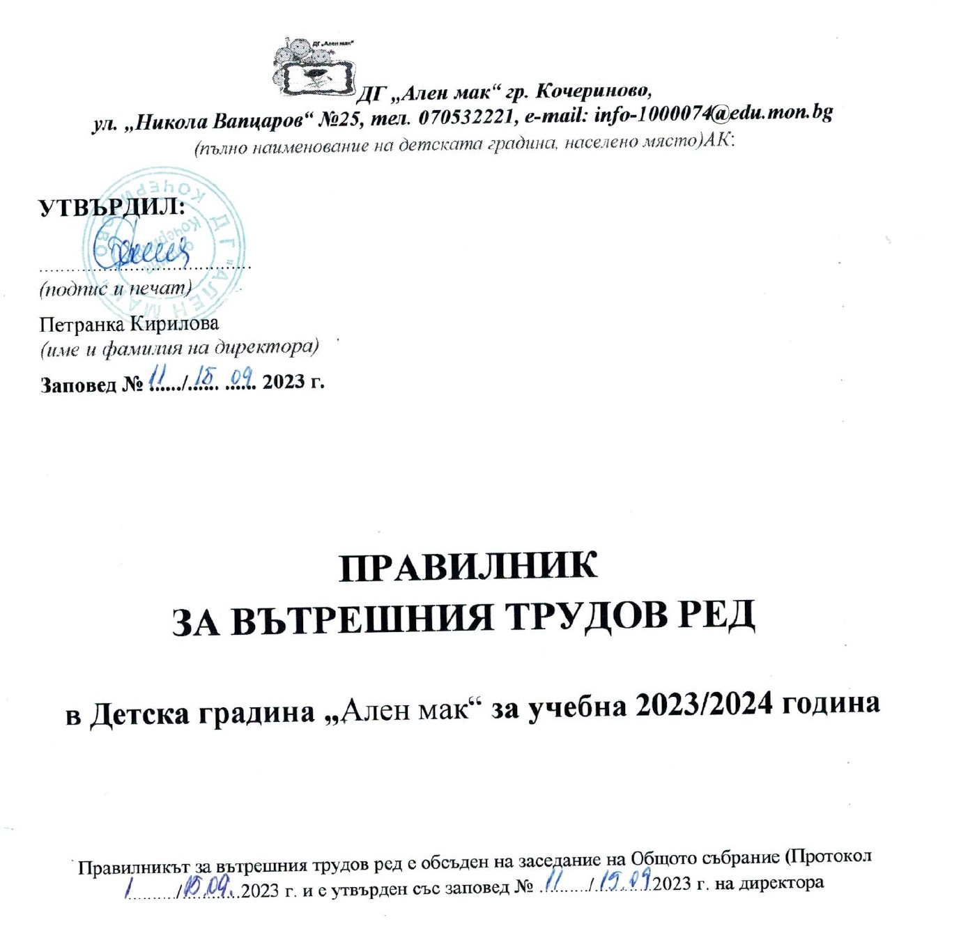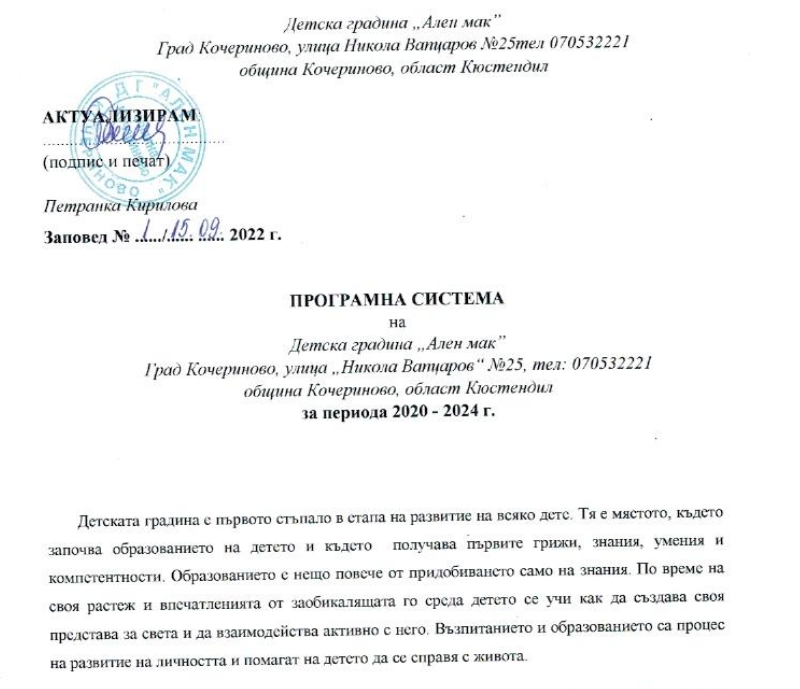 На основание чл.259 ал.1, във връзка с чл. 258 ал.1 и чл.266 ал.1 от ЗПУО, Протокол от общо събрание на родителите на децата от ДГ „ Ален мак ”, писмено уведомление от финансиращия орган с Изх.№ РД-01-05-390/02.09.2016г.